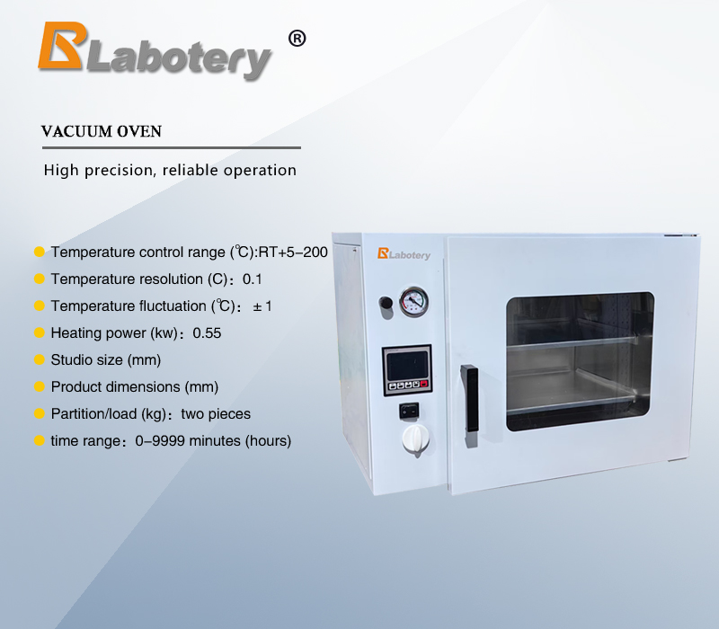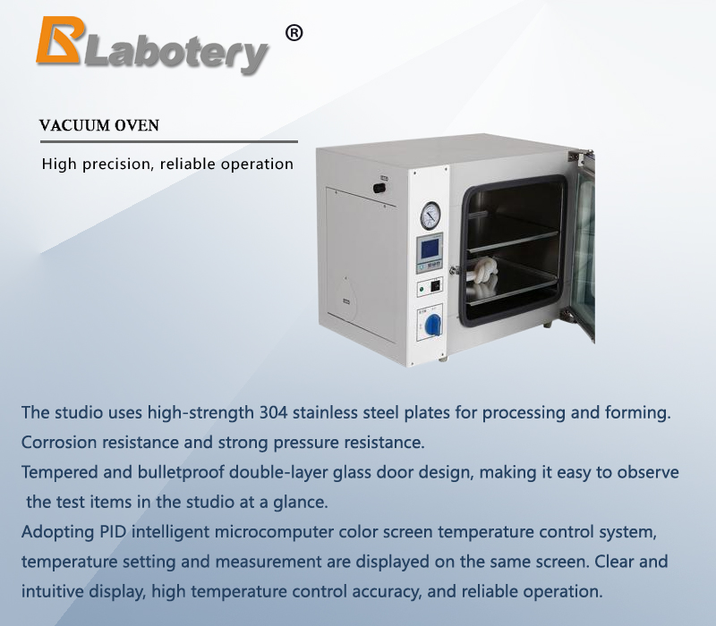 The vacuum drying oven is designed specifically for drying heat sensitive, easily decomposable, and oxidizable substances. It can be filled with inert gas inside, especially for items with complex components that can be quickly dried.